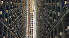The installation of the 22 metre high masts for the storage and retrieval machines was spectacular: the pre-assembled masts were lowered into the new building through a small roof hatch with the help of two crane vehicles.